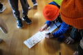 募金に協力してくれた人に「ありがとうございます」と丁寧に感謝を伝えながら教室を回っています。